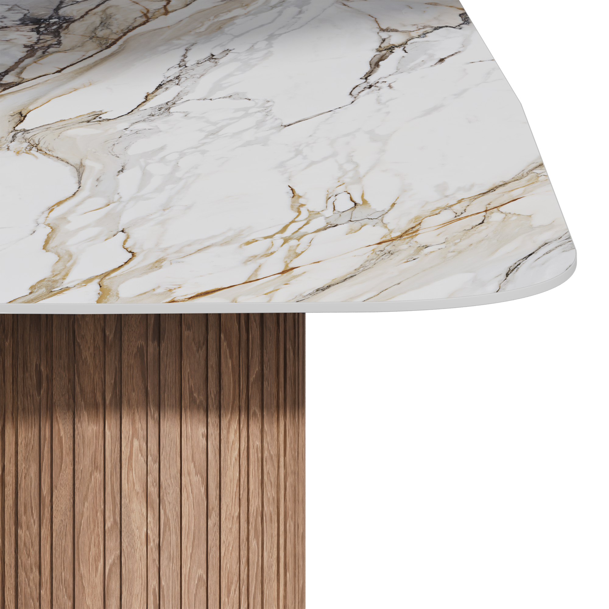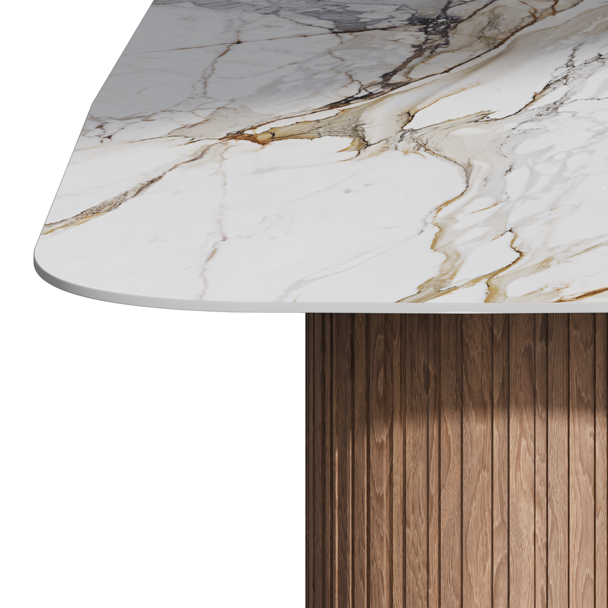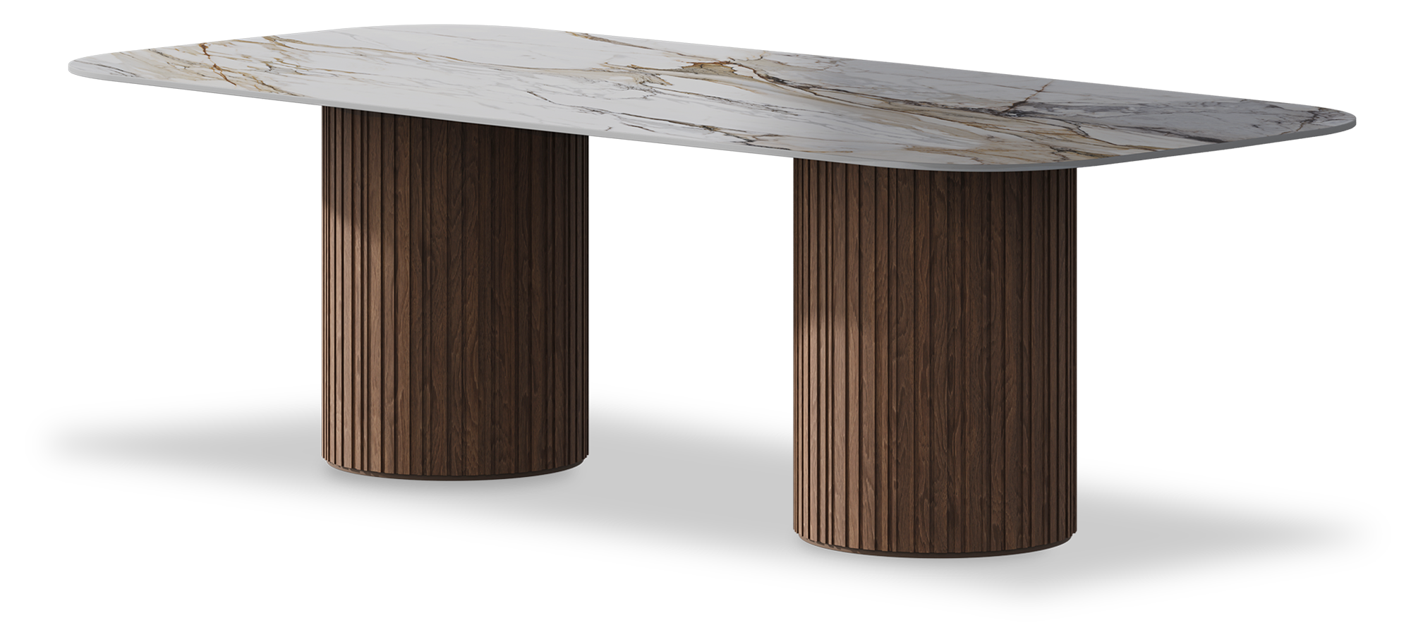 Every table we create is uniquely yours. Choose from our extensive range of porcelain surfaces, from dramatic marble effects to subtle concrete textures, then select the perfect base to complement your style. Whether you prefer the clean lines of our geometric Alveo base, the classical elegance of Colonna columns, or the natural warmth of Romano wood, every element can be tailored to your vision.
