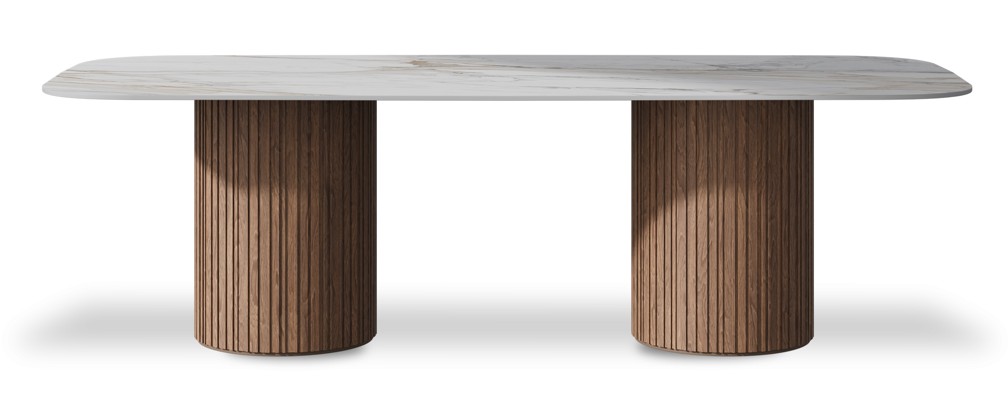 Create a dining space that truly reflects your style with furniture that's both practical and stunning to look at. Built from beautiful Italian porcelain stoneware, the gracefully curved rectangular top boasts a signature double pencil edge and a sleek 12mm profile that adds that extra touch of elegance. The clever design uses two wooden column supports that are perfectly positioned and spaced to match whichever size you choose for your home. You'll find plenty of colour and finish options to explore, so you can discover exactly what works with your home's character, whether it leans traditional or modern. Each table is lovingly handcrafted right here in the UK by skilled artisans who take real pride in creating pieces that will last for years to come. Model shown 250 x 110cm.