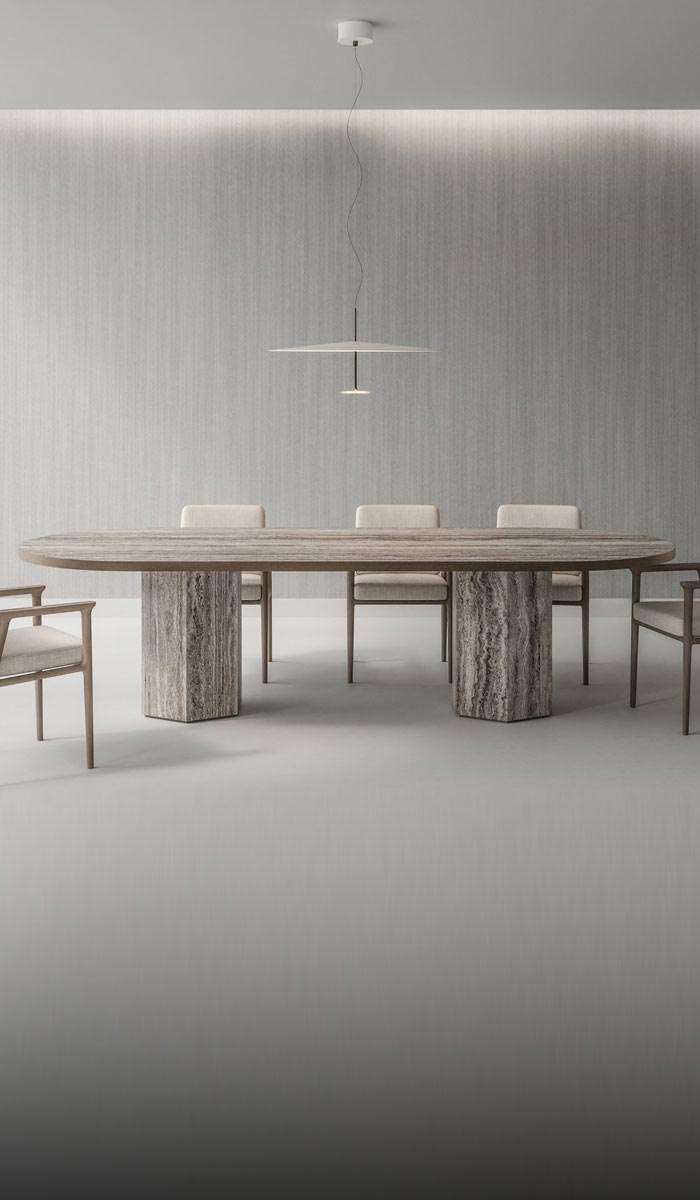 Every table we create is uniquely yours. Choose from our extensive range of porcelain surfaces, from dramatic marble effects to subtle concrete textures, then select the perfect base to complement your style. Whether you prefer the clean lines of our geometric Alveo base, the classical elegance of Colonna columns, or the natural warmth of Romano wood, every element can be tailored to your vision.
