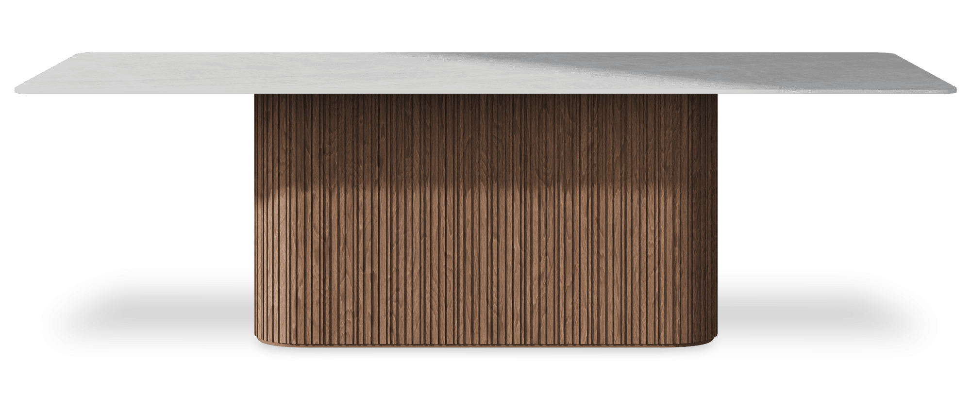 This beautiful dining table showcases a sleek rectangular top crafted from premium Italian porcelain stoneware, featuring an elegant double pencil edge and a neat 12mm thickness. It stands on a lovely wooden pedestal base. Every single table is carefully handcrafted here in the UK, so you know you're getting something really special made just for you. The range of colours and finishes is absolutely fantastic – you've got everything from classic marble looks to textured stone effects and modern concrete styles. Whether you're after something subtle and timeless that'll blend beautifully with what you've already got, or you fancy something bold and eye-catching that'll be a real conversation starter, there's definitely a style that'll suit your taste perfectly. It's brilliant how you can find exactly the right look to match your home and your personality. Model shown 250 x 110cm.